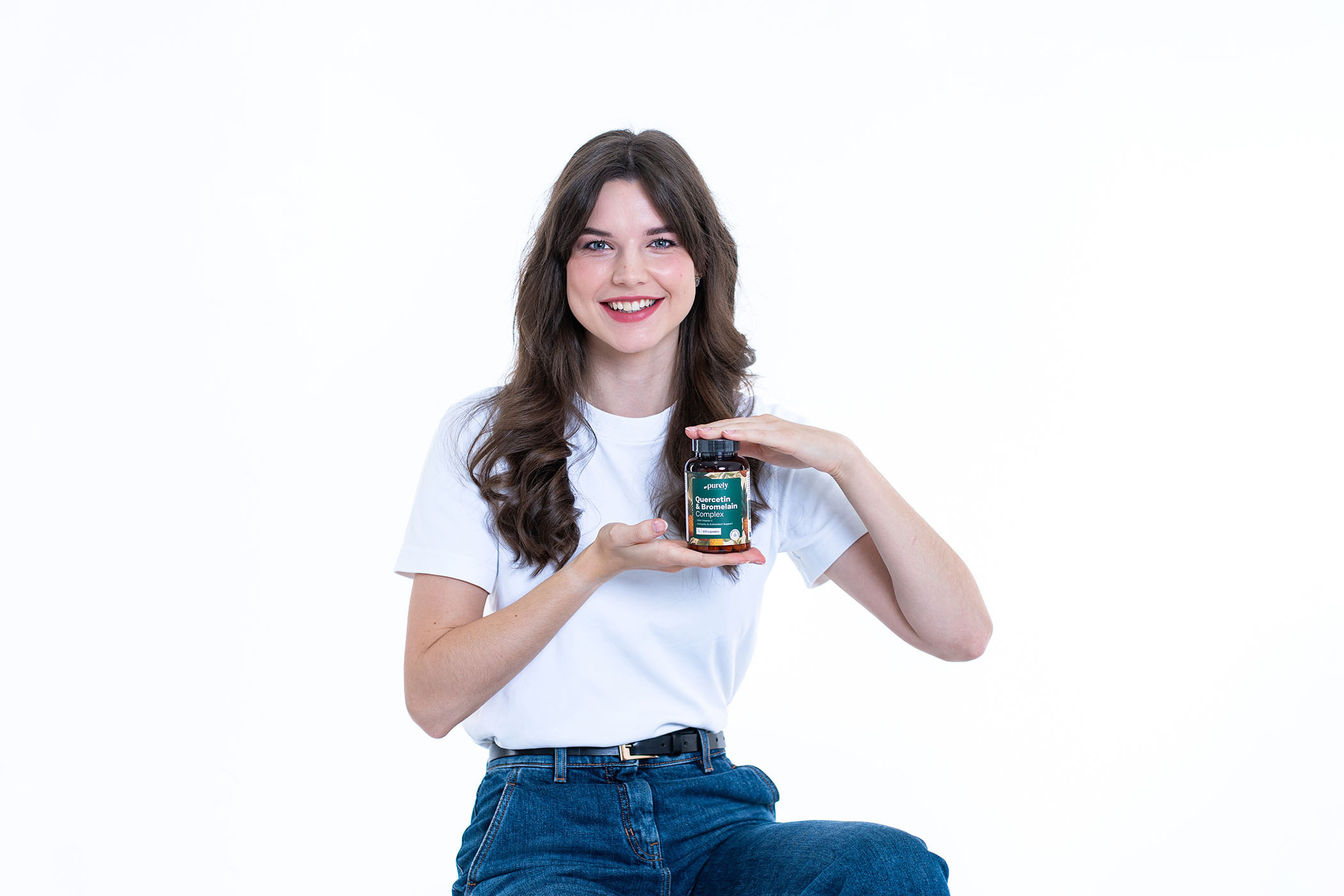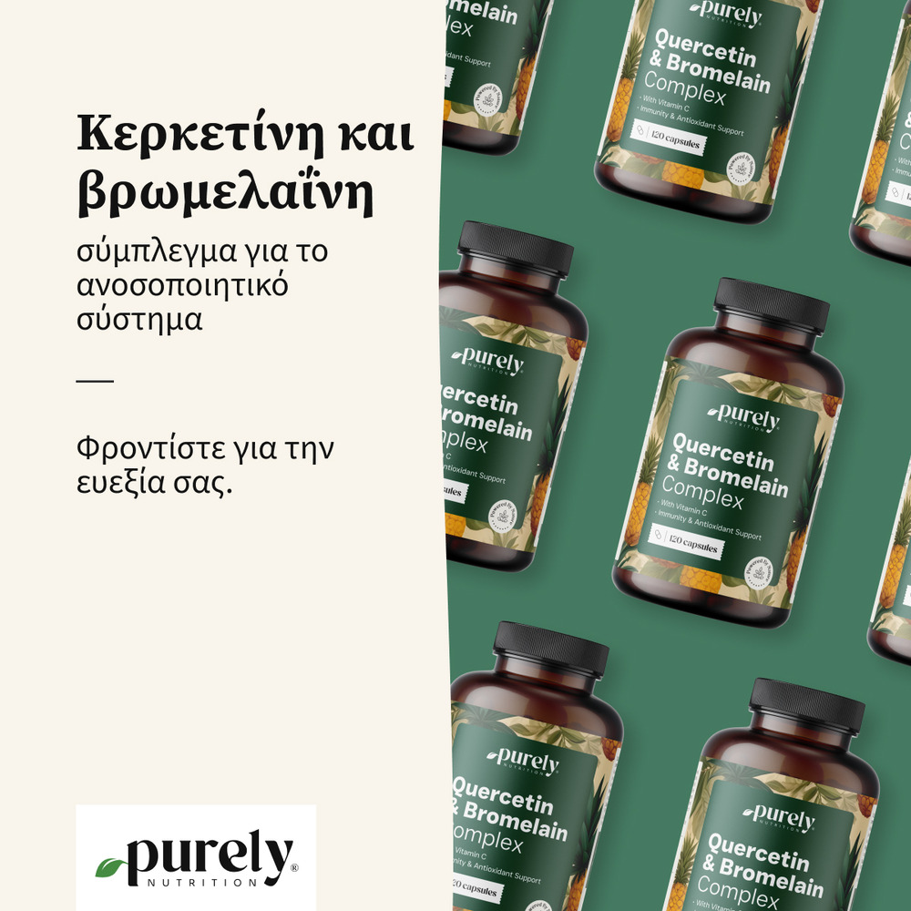 Ανάμεσά τους ξεχωρίζουν η κερκετίνη, η βρωμελαΐνη και η βιταμίνη C – προσεκτικά επιλεγμένες φυσικές ενώσεις, καθεμία με τις δικές της ιδιότητες, που σε συνδυασμό δημιουργούν μια ισορροπημένη και εξελιγμένη φόρμουλα.