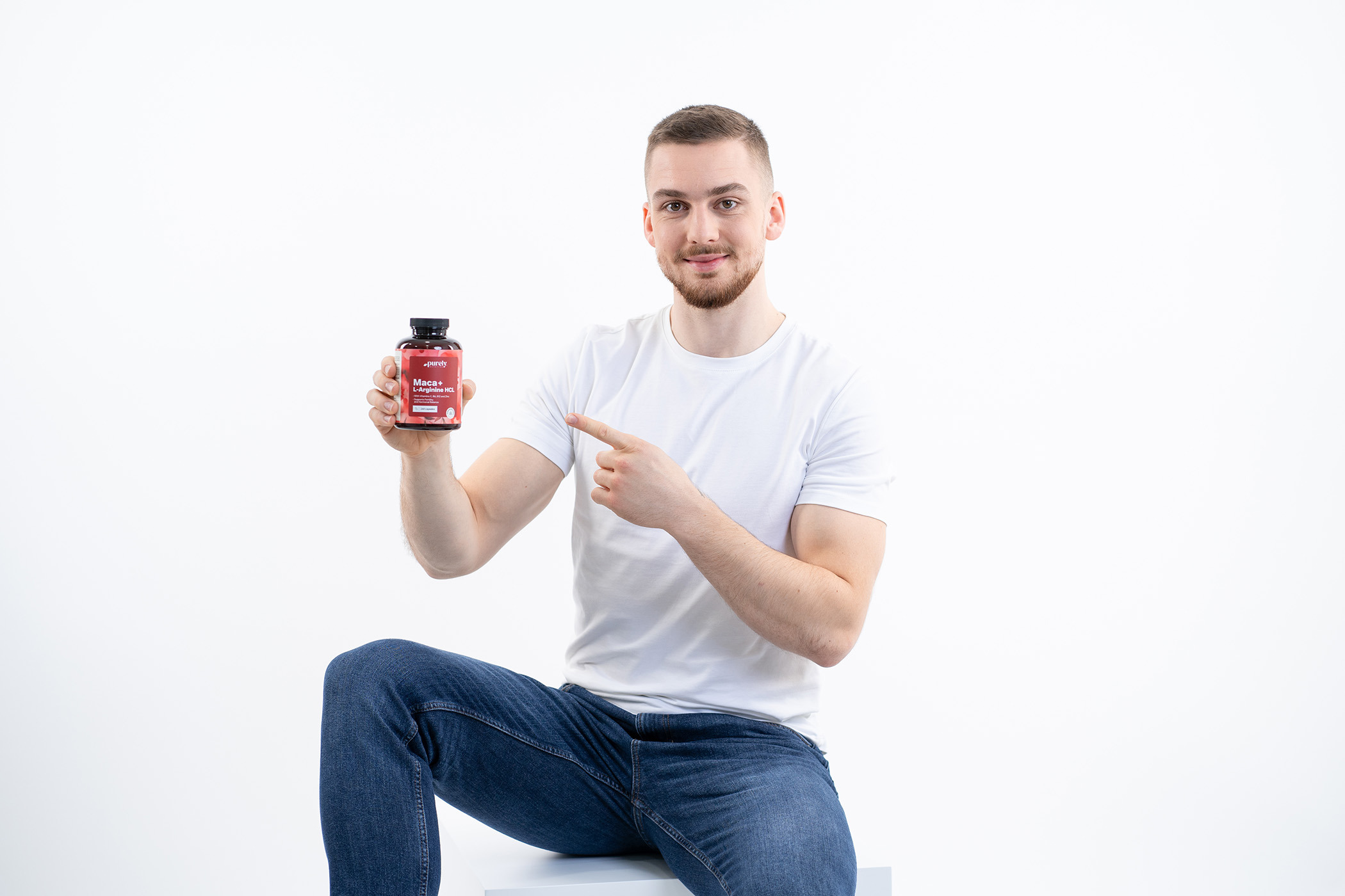 Συστατικά: L-αργινίνη HCl, εκχύλισμα μάκα 4:1 (Lepidium meyenii, ρίζα), υδροξυπροπυλομεθυλοκυτταρίνη (HPMC · υαλοποιητικός παράγοντας), άλατα λιπαρών οξέων μαγνησίου (αντισυσσωματικό), διοξείδιο του πυριτίου (ντισυσσωματικό), L-ασκορβικό οξύ (βιταμίνη C), γλυκονικός ψευδάργυρος, πυριδοξίνη υδροχλωρική (βιταμίνη B6), κυανοκοβαλαμίνη (βιταμίνη B12).